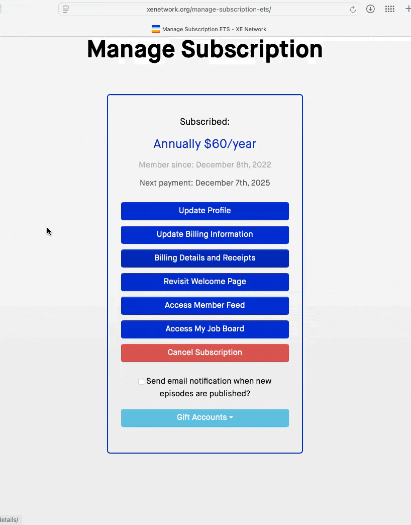Once logged in, click on "Manage Subscription" in the upper right corner of the Energy Transition Show site
